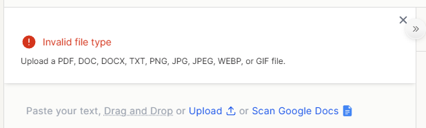 Format File yang didukung untuk cek Ai yang disarankan adalah PDF, Doc, atau Docx yang mana isinya berformat Text bukan gambar.